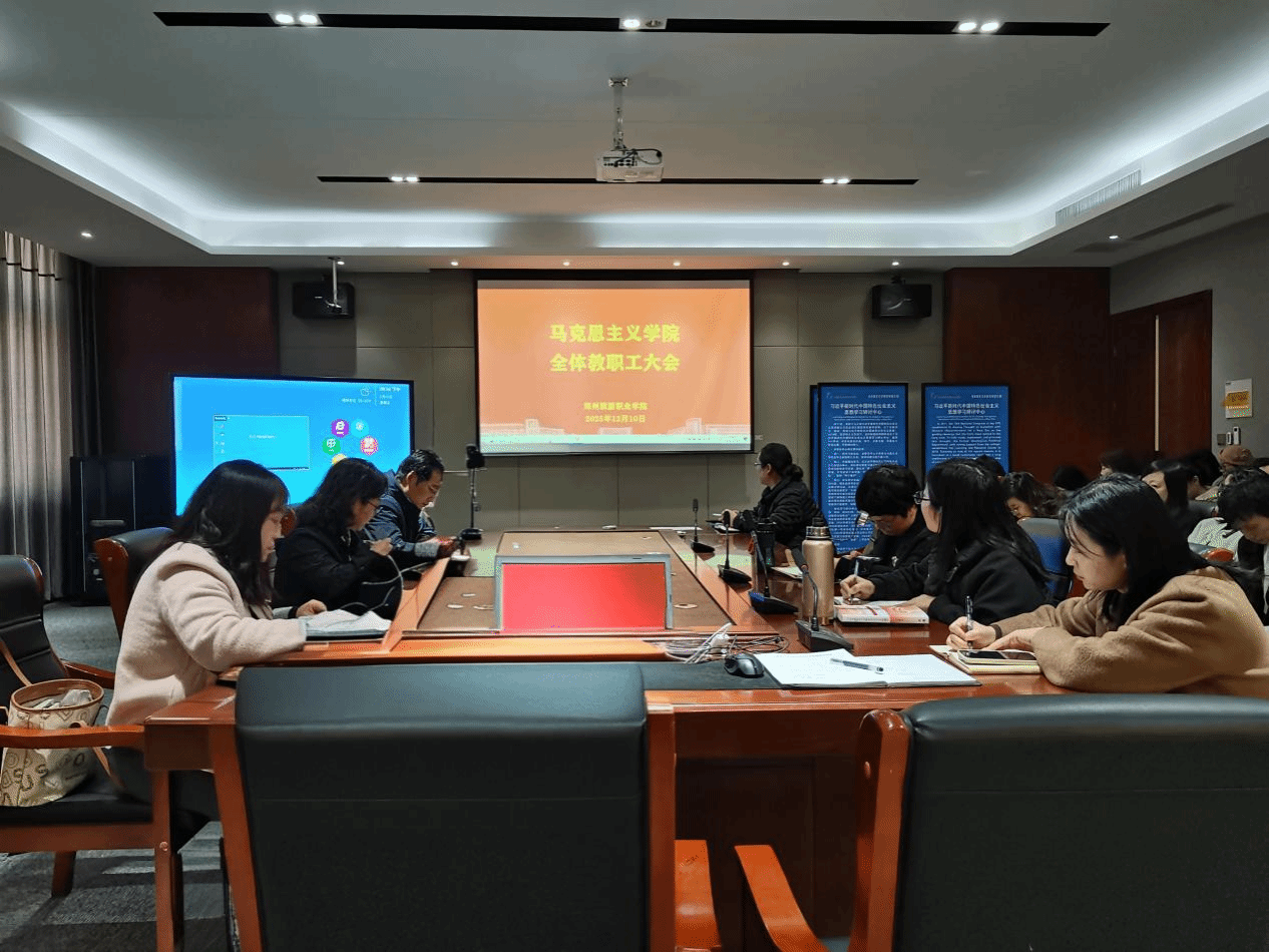 2025年12月10日,马克思主义学院在学习研讨中心召开了部门全体会。会议主要围绕马院近期工作部署,明确了在新领导班子上任后的部门工作安排与未来发展方向,动员全院教职工团结一致,共同为马院建设贡献力量。学院新领导班子成员及全体教职工参加了此次会议。