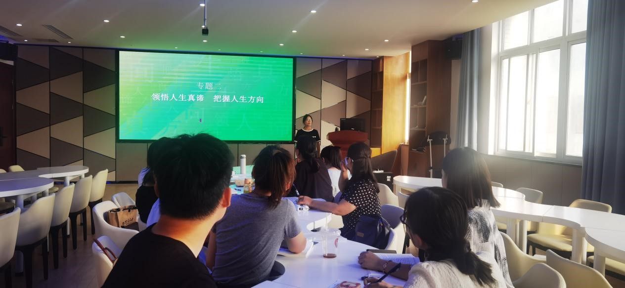 随后,由赵新老师就第一章——《领悟人生真谛 把握人生方向》进行说课和集体备课。赵老师从董丽娜的人生逆袭视频进行课程导入,引出问题并引发学生思考;接着阐述了自己梳理的理论框架、重点难点问题、相关的案例分析、课堂互动等。其他老师们也针对本说课内容进行提问和补充,现场讨论热烈,学习氛围浓厚。