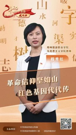 程秀红老师自入校以来,在学思践悟、教学科研、宣讲交流等方面表现突出,曾获郑州市教育局系统“优秀共产党员”、“郑州市技术标兵”、第一届“感动旅院十大人物”等荣誉称号。