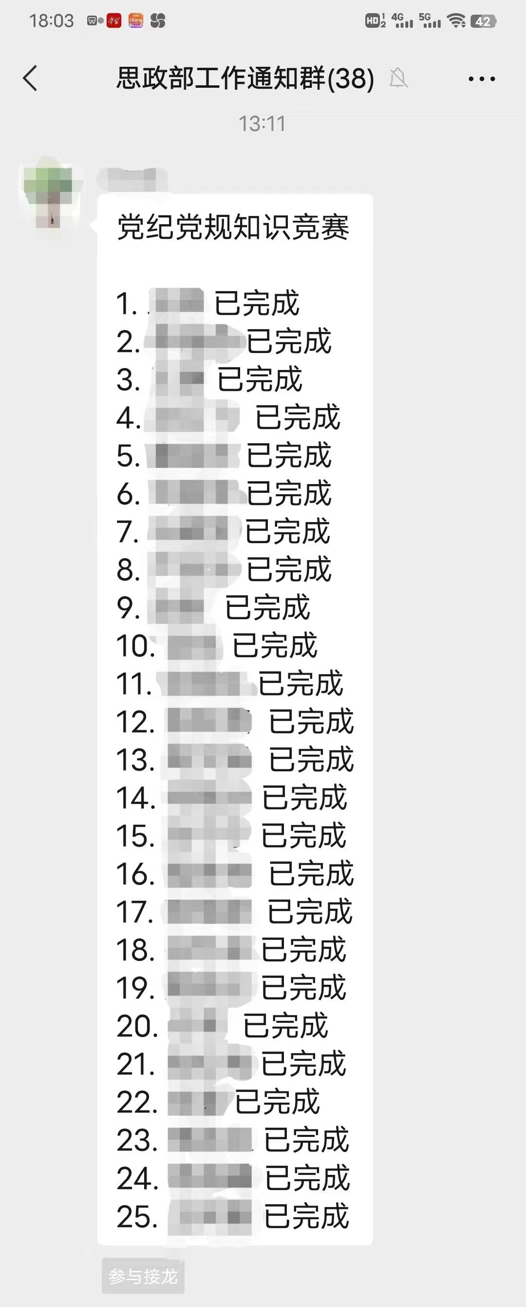 根据《关于在全市教育系统党员干部中开展“明方向、立规矩、正风气、强免疫”专题纪律教育的实施方案》要求,我校组织全体党员和干部参加党规党纪知识竞赛,马克思主义学院党总支广泛动员,积极组织参与,全体党员在答题的同时,也接受了一次党纪党规无形的教育,加深了对党的纪律的理解和认识。