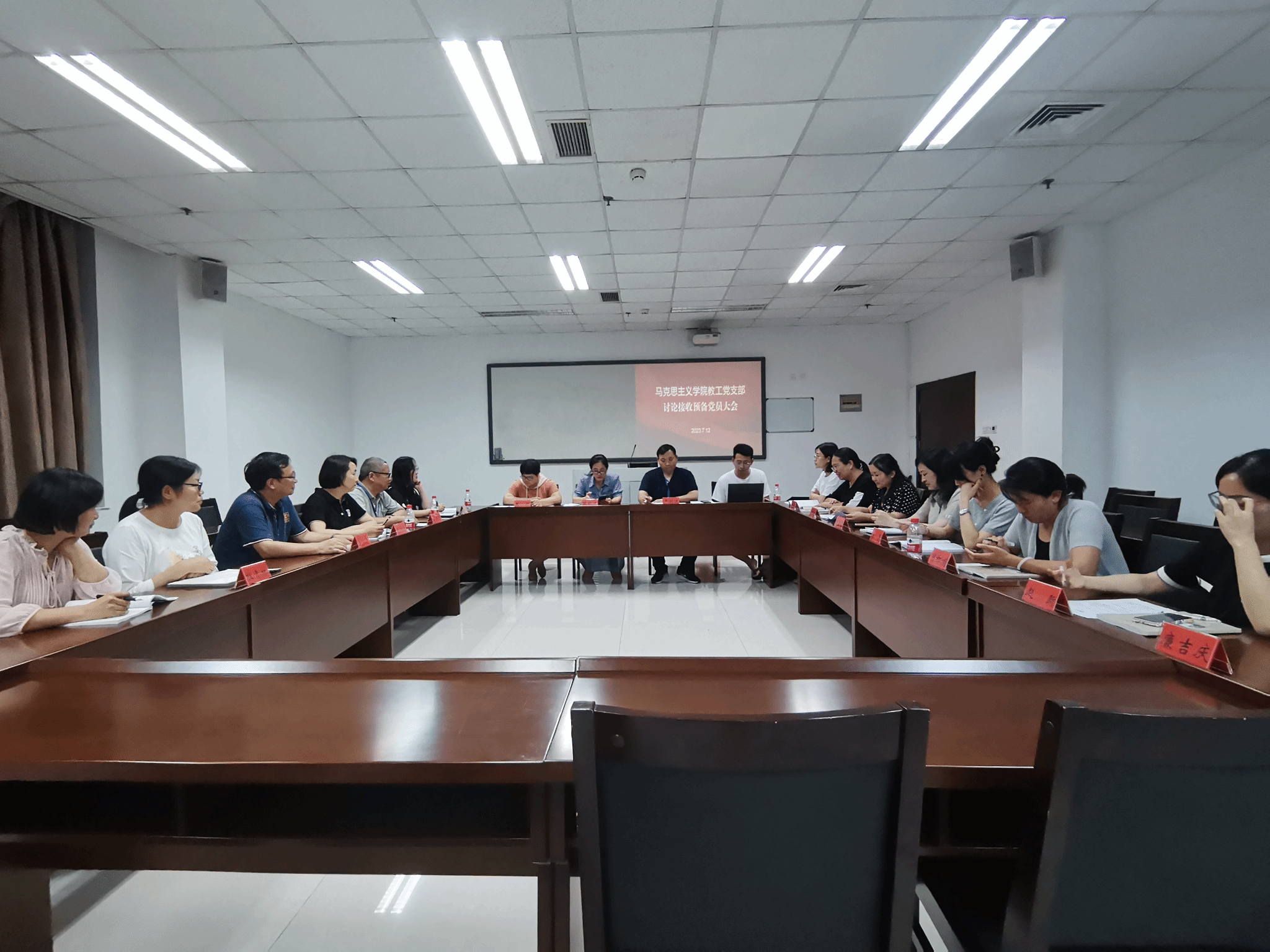 7月12日,马克思主义学院教工党支部召开了谈论接收马晓雯同志为预备党员的党员大会。