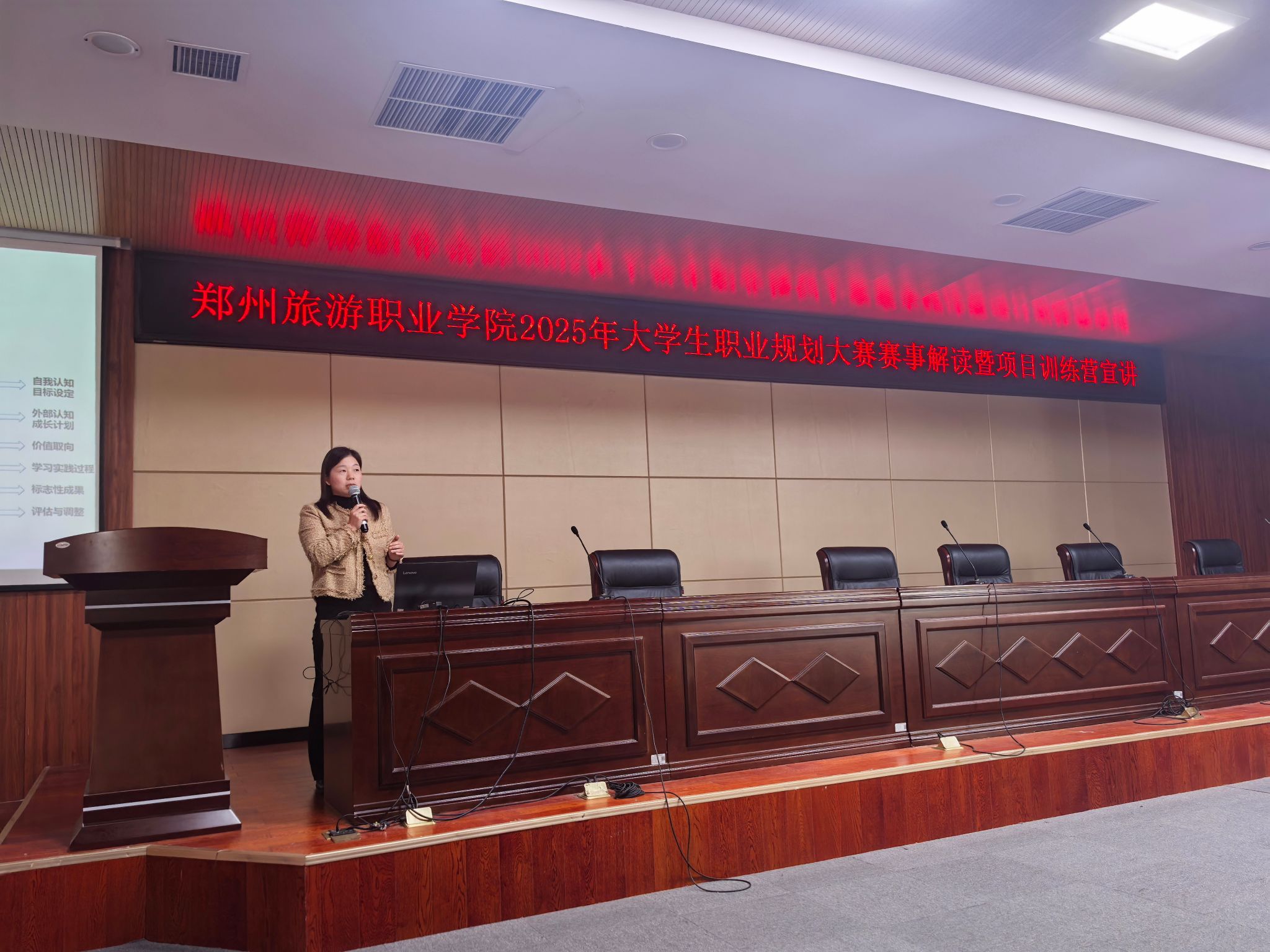 10月22日下午,郑州旅游职业学院“2025年大学生职业规划大赛赛事解读暨项目训练营宣讲”活动在综合楼C座4楼报告厅顺利举办。本次宣讲由马克思主义学院职业发展与创新创业教育教研室副教授刘丽军主讲,旨在通过政策解读、备赛指导,帮助师生明晰大赛方向、提升参赛能力,为学生职业规划与就业发展筑牢基础。各二级学院有意向参加职业规划大赛的在校生及有参赛指导意愿的教师参加活动。