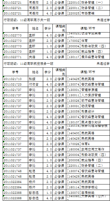 11级5月24日清考后未通过学生名单公示