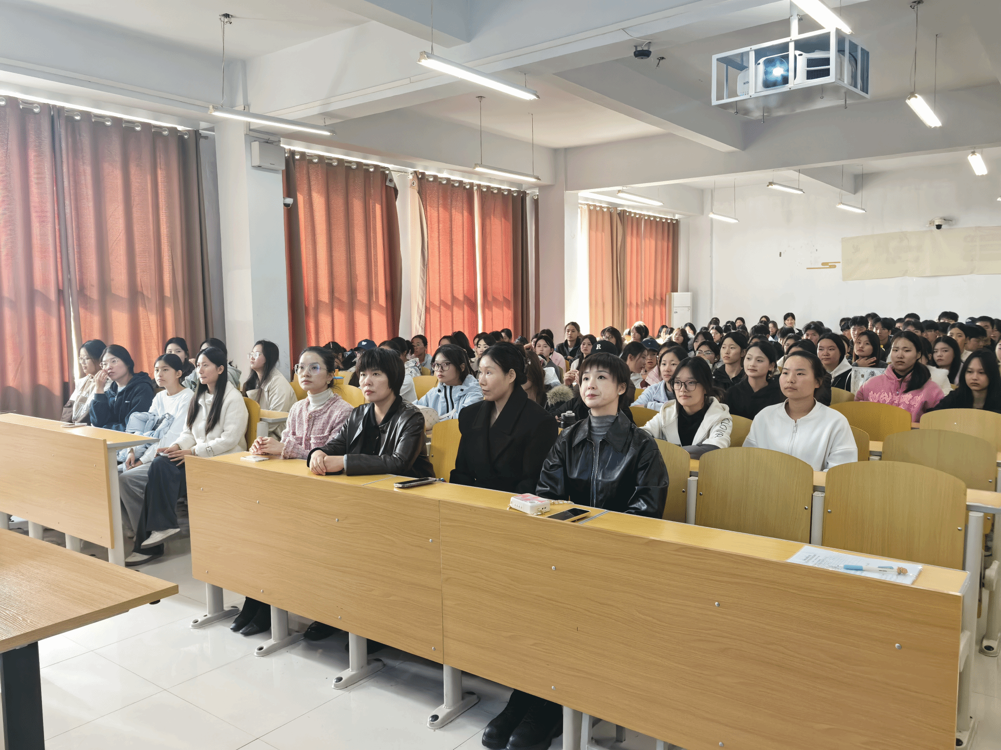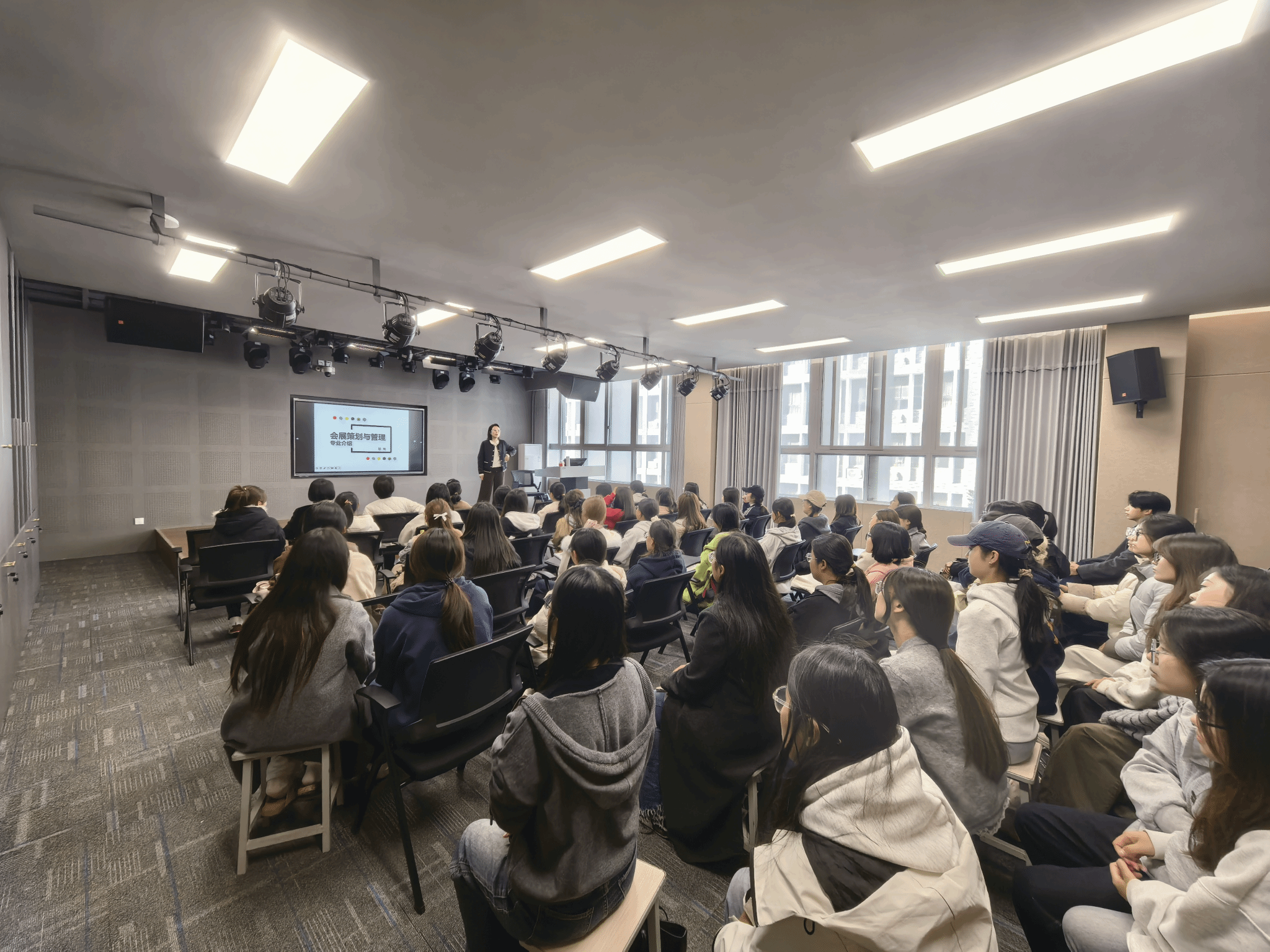 空中乘务专业教研室主任张莹以“心向蓝天,筑梦起航”为主题,从空乘专业概述入手,用丰富的行业实例与数据,阐述了我国民航业的蓬勃发展态势,以及空乘专业在行业中的重要地位,让新生对专业有了宏观认知。谈及课程设置与学习目标,教研室5位专业教师结合自己的教授课程,详细介绍了涵盖航空服务礼仪、客舱服务、应急处置等在内的核心课程,强调理论与实践结合的教学模式,鼓励新生努力提升专业技能,为未来职业发展筑牢根基。在专业发展空间方面,张莹列举了国内外航空公司、机场地勤、高端商务服务等多元就业路径,还分享了优秀毕业生的职业成长故事,极大激发了新生对专业学习的热情与期待。此次宣讲会,为新生开启空乘专业学习之旅奠定良好基础 ,也让他们对未来的职业发展充满信心。