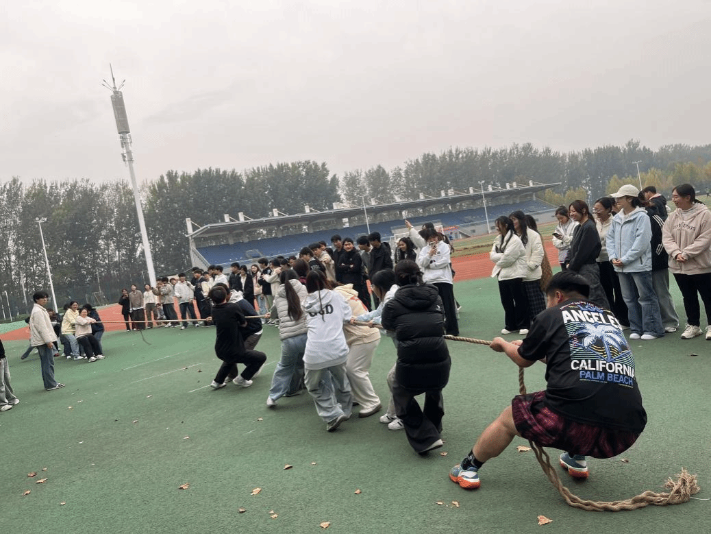 为了积极响应全面推进素质教育的号召,进一步培养我院同学们的团队协作精神,让同学们在相互配合与支持中深刻体会到团结的力量,同时提升同学们的身体素质,帮助同学们在紧张的学习生活中释放压力并调节情绪。10月29日下午,我院举办了“凝绳聚力·共筑团队”拔河比赛活动。本次活动以班级为单位,每班四男四女。由抽签形式分组,决定比赛顺序。