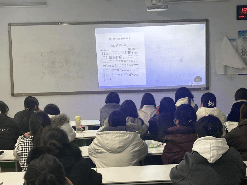 本次活动充分利用晚自习时间,由各班团支书、文艺委员自主组织学习校歌。同学们从跟唱到分段练习,以“唱准、唱熟”为起点,通过互相纠正节奏、反复磨合,慢慢找到声部间的默契。晚自习的教室里,同学们从最初的零散哼唱到后来的整齐合唱,完成了从“会唱”到“唱好”的转变,展现出我院25级新生专注热忱、互助并进的青春风貌。