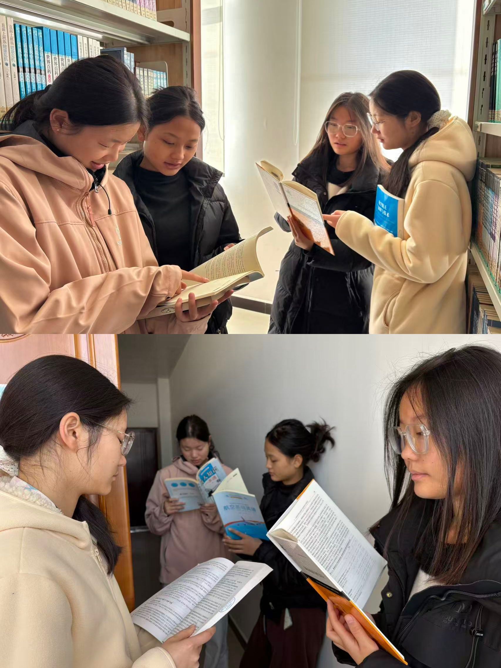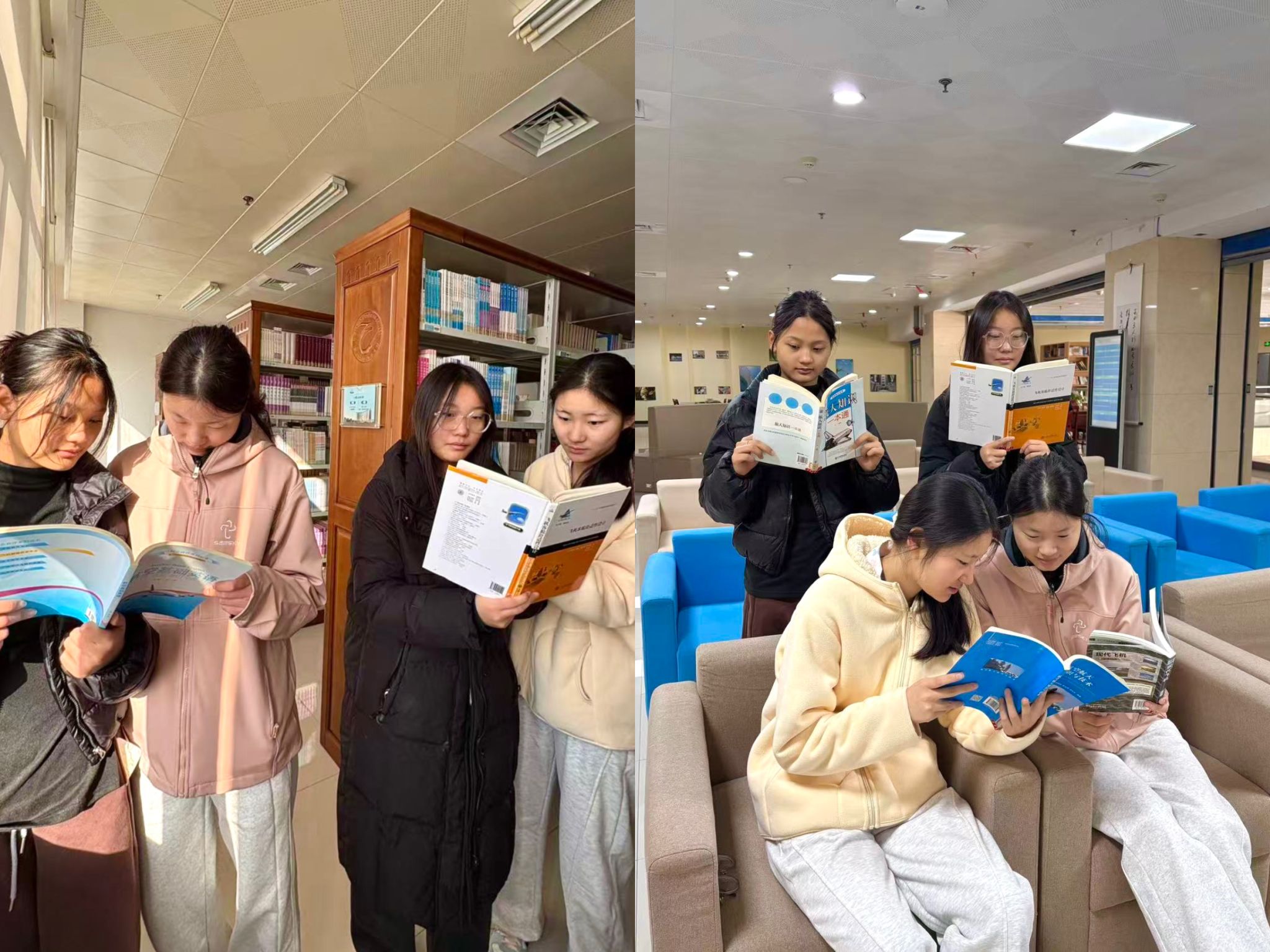 活动现场,同学们围绕《飞机客舱舒适性设计》《航天知识》《航空航天知识与技术》《航空英语》《现代飞机》等专业书籍展开深度分享。针对《飞机客舱舒适性设计》,同学们结合书中“客舱服务场景模拟”章节,分析实际工作中礼仪细节对服务质量的影响;解读《航天知识》时,聚焦“飞机运行原理”“航天任务协同”等内容,结合行业案例探讨航天领域专业实操能力与跨系统协作效率的提升方向;聊到《现代飞机》,大家延伸分享了智慧服务、数字化民航等新兴领域对专业技能的新要求。分享过程中,同学们结合自身专业学习中的困惑与思考积极互动,在思维碰撞中既加深了对专业的理解,也明确了后续学习的重点方向。