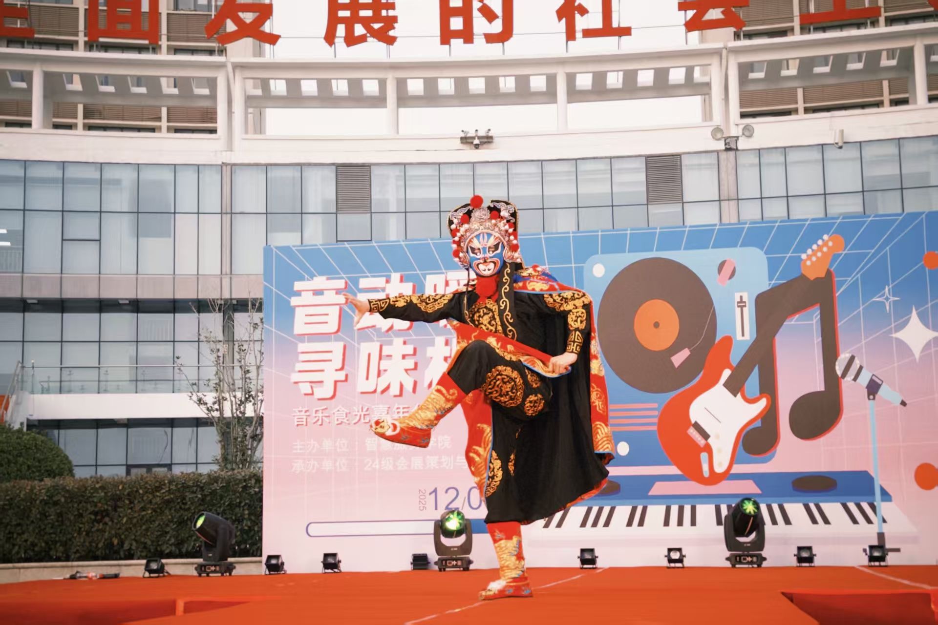 2025年12月8日,24级会展策划与管理专业学子打造的以“音动暖冬,寻味相聚”为主题的音乐食光嘉年华活动在校园启幕,本次活动以“音乐”为纽带、“美食”为灵魂,旨在丰富冬日校园生活,为师生搭建互动交流的平台,同时检验了会展专业学子在活动策划与现场执行中的实战能力。