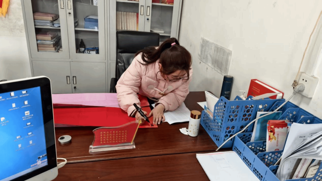 最难忘的还是写春联的环节,红纸铺展,墨香四溢,将“福暖四季”“国泰民安”的期许写进字里行间,再把写好的春联和福字送到居民手中。
