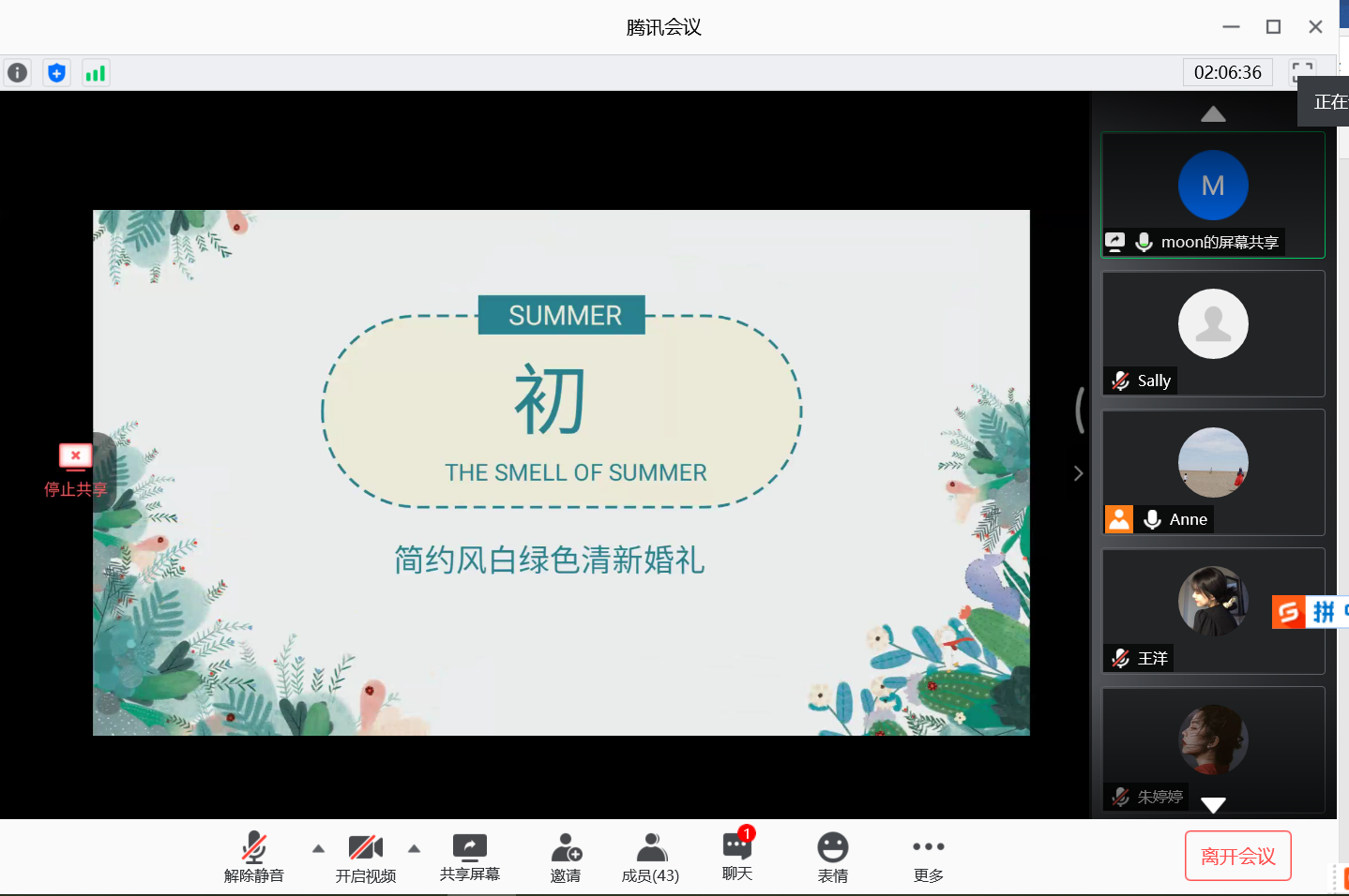 婚庆教研室使用腾讯会议进行毕业设计答辩
