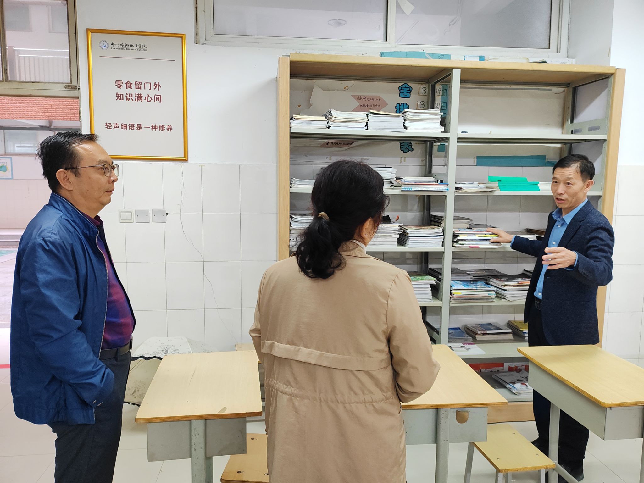 图书馆馆长胡志霞调研豫英教育学院阅览室