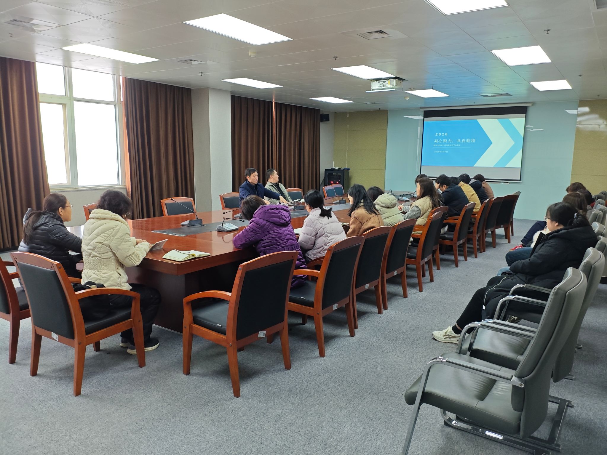 2026年3月5日上午10:00,图书馆召开新学期全体教职工会。会议由图书馆馆长胡志霞主持,图书馆全体干部职工参加会议。