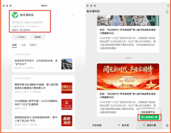 线上参与方式:参与者通过组委会发布的活动二维码,进入本次活动页面,报名参与。也可以关注“新永源科技”微信公众号,通过公众号菜单进入诵读平台;