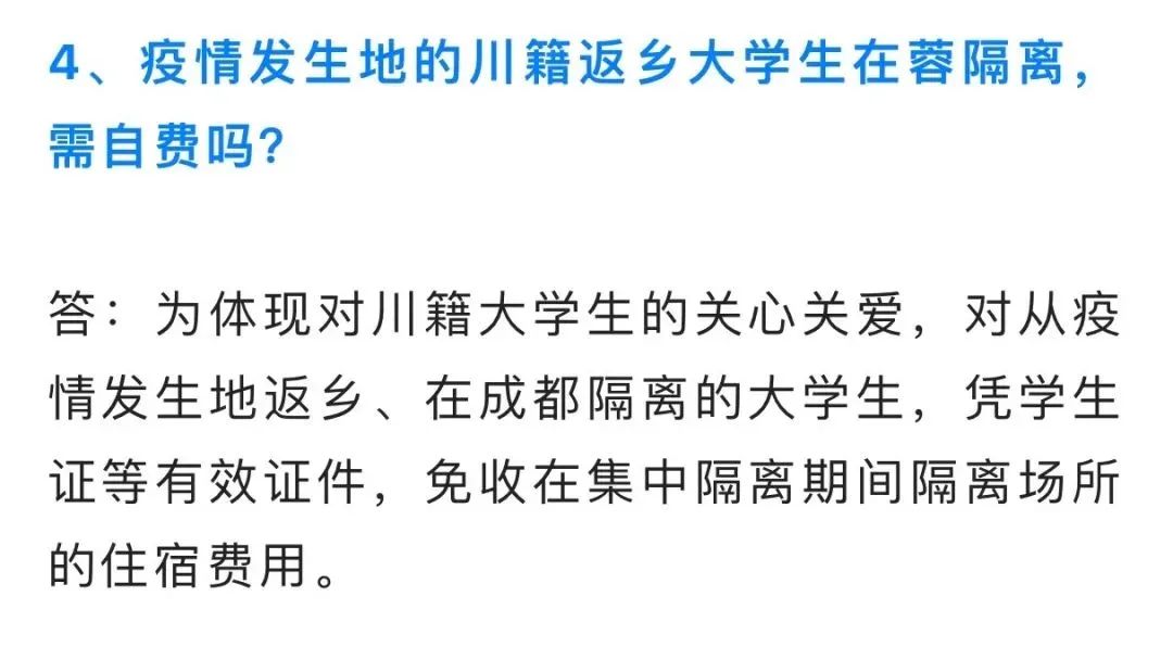 目前包括成都、郑州等在内的多个城市都已出台针对高校学生的返乡免费隔离政策。