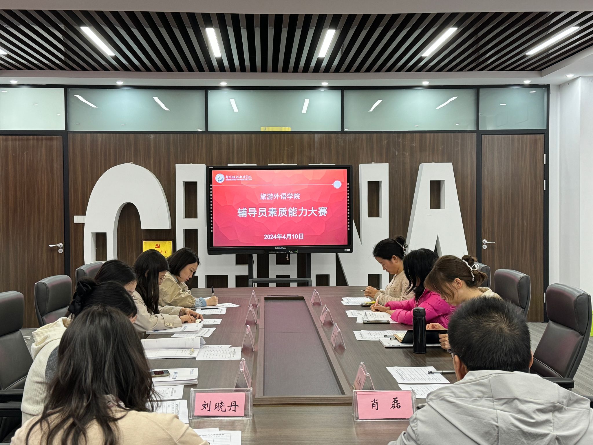 为深入学习贯彻习近平新时代中国特色社会主义思想,全面贯彻落实全国高校思想政治工作会议精神和《普通高等学校辅导员队伍建设规定》要求,不断提升旅游外语学院辅导员理论水平、职业能力和专业素养,4月10日旅游外语学院在清源楼党员活动室举办2024年辅导员素质能力大赛初赛。旅游外语学院党总支书记肖磊、团总支书记刘晓丹出席,全体专兼职辅导员参赛。