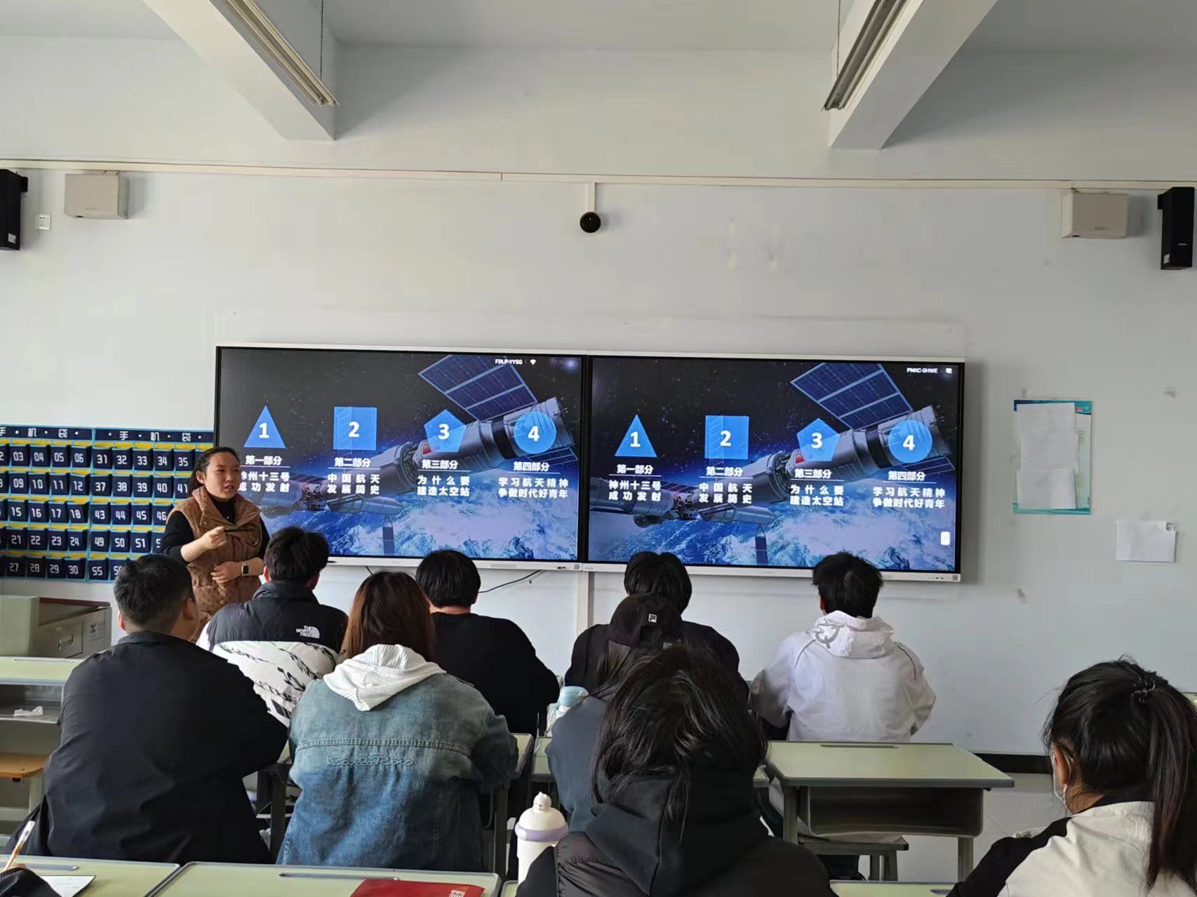 课堂开始,张冰首先让大家观看了一个神舟十三发射的视频,看着火箭冲破大气层,消失在无尽的夜空中,同学们都为之震撼,感受到了中国航天事业的蓬勃发展。接着,又深入讲解了航天精神的内涵,包括勇于探索、敢于创新、团结协作、无私奉献等方面。她指出,航天精神是中国航天事业不断取得新成就的重要支撑。