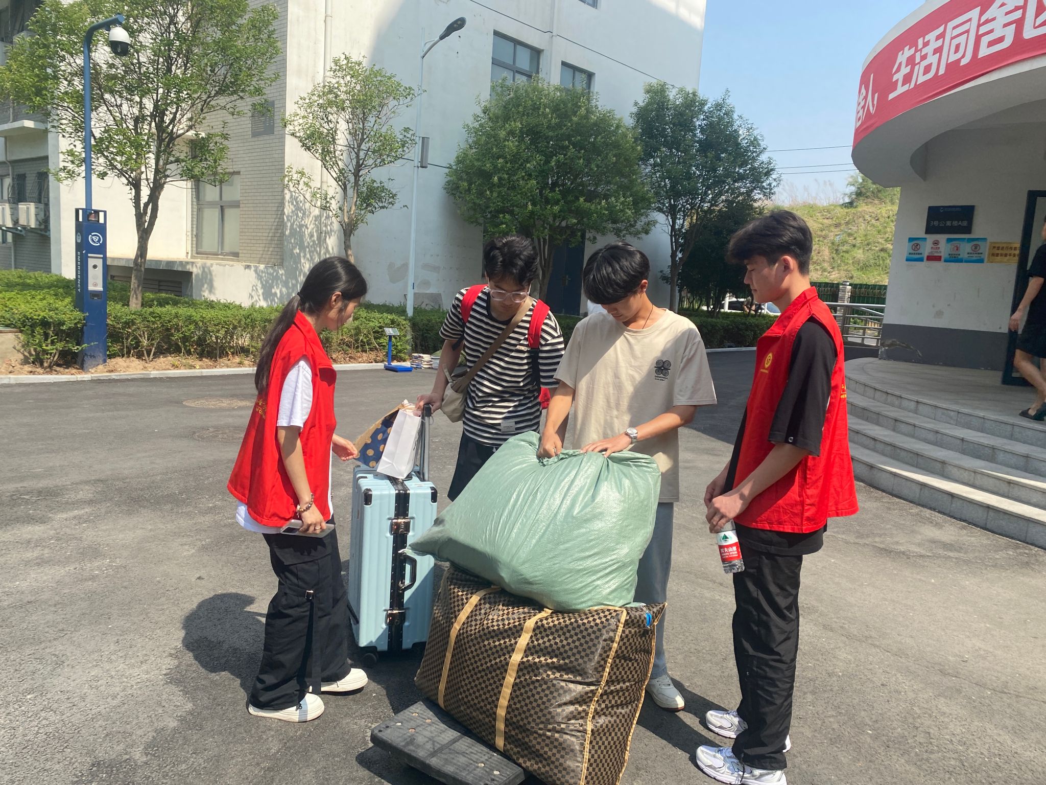活动当天,志愿者们身穿统一的志愿者服装,早早地在宿舍楼前集合,热心的帮助学长学姐们打包行李,搬运下楼,运送到校门口。在搬运行李的过程中,志愿者们分工明确,有的负责搬运大件行李,有的整理零散物品,确保每一件行李都能安全、顺利地运送到指定地点。尽管天气炎热,但志愿者们的热情丝毫未减,他们的汗水和笑容成为了校园里最美的风景线。