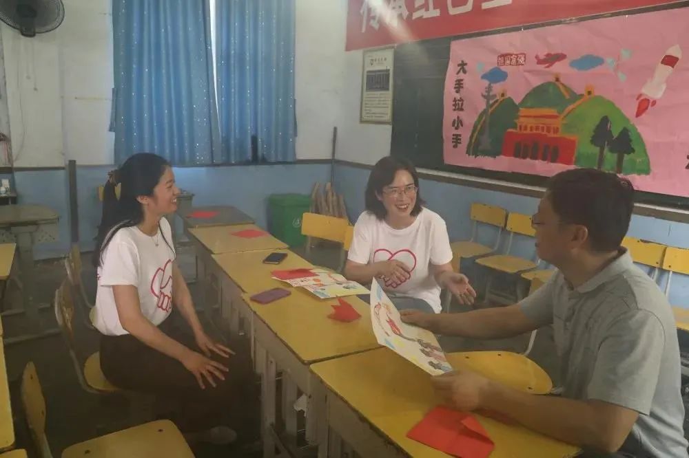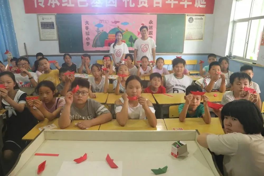6月30日,旅游外语学院“手拉手”社会实践志愿服务队,在党总支书记白娜带领下,团总支书记刘晓丹,辅导员刘珍、刘好好,英语专业老师李思及学生一行30人,前往登封市大金店镇顾家河小学,开展“党史理论宣讲”为主要内容的双语社会实践和志愿服务。活动共分三个阶段:一是举行郑州旅游职业学院大学生社会实践基地挂牌仪式,建立长效社会实践和志愿服务机制;二是“传承红色基因•礼赞百年华诞”红色宣讲活动。志愿者们用红色故事会、红歌传唱、红色主题绘画课程、红色情景剧等形式,以中英文交替的活动方式,引导学生增强党史学习意识,厚植爱党爱国情怀,听党话、跟党走;三是“大手拉小手、点亮微心愿”爱心传递活动。前期由志愿者们提前征集了84个孩子们的微心愿,对全校师生发起认领倡议,结对双语帮扶,引导学生们树立崇高的理想,坚定理想信念,增强实现中华民族伟大复兴的决心和信心。