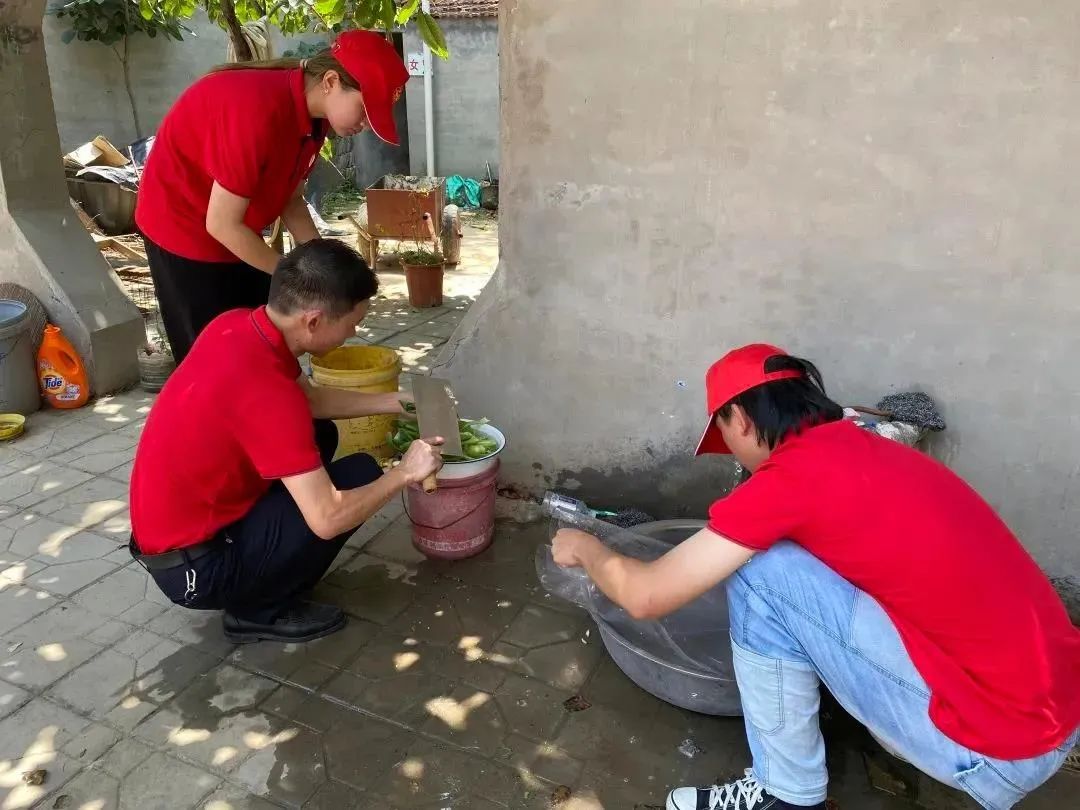 7月4日,烹饪食品学院“红小厨”社会实践志愿服务团队,在党总支书记胡志霞带领下,辅导员张莉莉、花磊及学生等16人前往内黄县开展为期5天的社会实践活动。活动得到了内黄县团委的大力支持。通过开展红色沙区研学寻访,免费检测水质,餐饮技能展示和培训,同时为内黄县党龄超过50年的老党员做营养配餐,村民们进行烹调培训,党龄超过50年的党员膳食现状调研等系列活动。实践期间,汗水浸透“红小厨”队员们的衣服,火辣辣烈日晒在队员们身上,但大家克服困难,不怕苦,不怕累,全身心地投入到实践工作中,赢得了当地团县委领导乡镇村民的一致好评,提升了学校的知名度和美誉度,增强了新时代大学生的责任感和使命感。实践中的所见所闻所感,不但让学生体察国情民情,感受家乡的变化和全面建成小康社会的伟大成果,也是落实“三全育人”,实现实践育人的有效探索。让学生在行走课堂中受教育、长才干、作贡献,传承红色基因,汇聚青春力量,努力成为堪当民族复兴重任的时代新人。