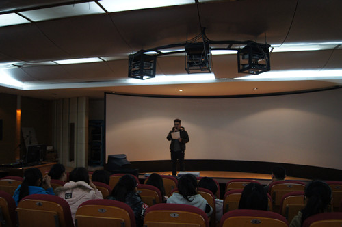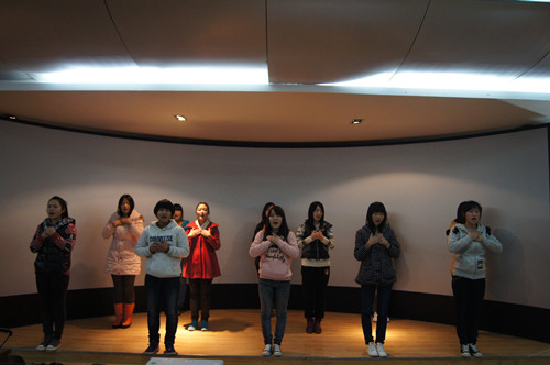 2013年12月5日12时,旅游管理系道德讲堂在西教学楼四楼3D教室进行排练。到场的老师有我系党总支副书记张笃川、团总支书记金慧慧和辅导员艾雪荣。