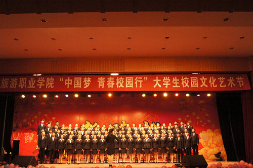 2013年12月9日17时,在指导老师时晨老师的带领下旅游管理系80名同学在我院三楼礼堂参加“中国梦,青春校园行”大学生校园文化艺术节12.9合唱比赛。旅游管理系党总支副书记张笃川老师和旅游管理系团总支书记金慧慧老师到达现场观看了比赛。