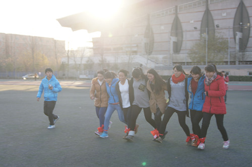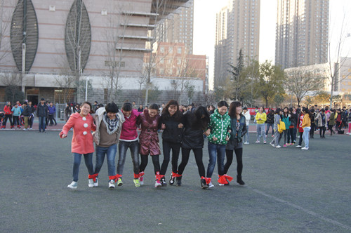 2013年12月11日16时,旅游管理系团总支各部负责在操场组织同心跑活动。