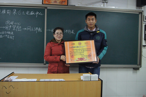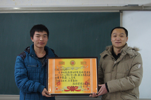 2013年12月18日8时,旅游管理系团总支干事到获奖班级开展颁奖仪式。