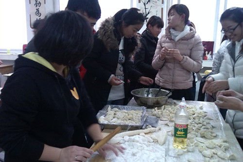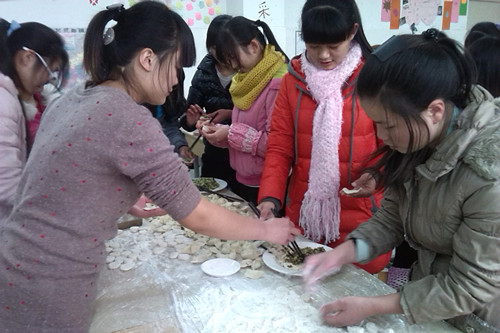 2013年12月19日16时,旅游管理系12级高旅八班同学在班级开展冬至包饺子活动。