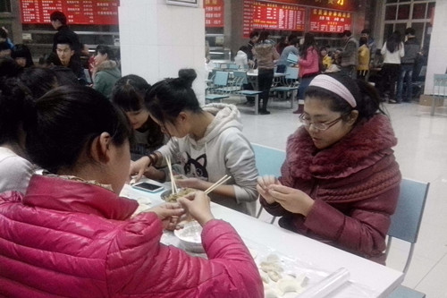 活动过程中,大家都亲身参与,各展所长,进行包饺子比赛,一个个奇形怪状的饺子给大家带来了阵阵的欢乐。同学们也准备了许多节目:歌曲、小品、轮滑、舞蹈等,大家玩的不亦乐乎。在一阵温馨,欢乐之后,本次的冬至联谊活动就结束了,相信大家都会满载欢乐、和谐、幸福而归。