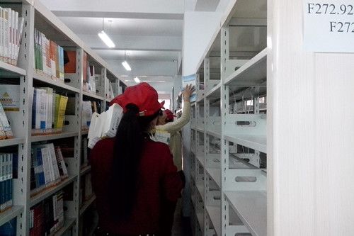 2014年3月26日16时,旅游管理系青年志愿者协会分会负责人带领5名青年志愿者到学校图书馆帮助老师整理图书。