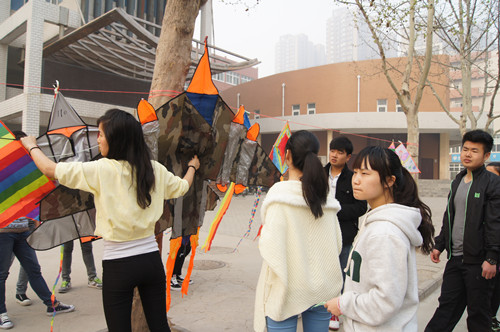 活动过程中,大家积极帮忙把做好的风筝悬挂起来,学院的整条街道都挂满了各式各样的风筝,并且同学们对风筝进行了投票。放飞风筝,放飞梦想,传达我们的爱心、真情和对未来的美好祝福。一只只风筝就好像是一颗颗爱心,让我们的爱心在空中飞扬、传递,让我们的激情照亮整片天空。