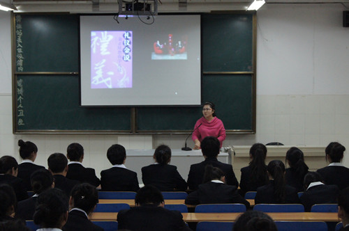 为了让学生干部更好的、更贴心的为旅游管理系师生服务,旅游管理系团总支书金慧慧特组织学生干部于2014年3月31日18时在我院西教学楼203多媒体教室观看《礼仪金说》视频。各位学生干部专心致志地观看视频,并认真做笔记。