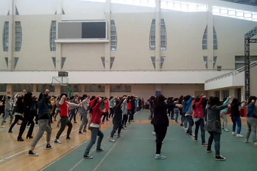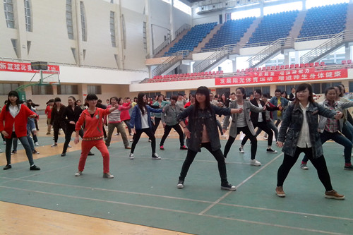 2014年4月16日13时,旅游管理系13级导游班的31名同学参加太极扇训练活动,为院运动会开幕式表演做准备。同学们一遍遍地练习拳法,规范动作,努力打出整齐划一的排场、打出太极的精气神和我院同学蓬勃向上的精神风貌。