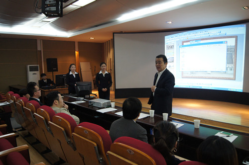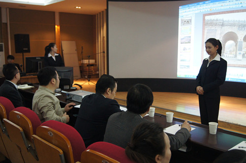 两位同学的动听讲解令人望尘莫及,但老师们锱铢必较,从一个成语、一个发音来指导她们。樊院长更是根据历年参赛获奖同学的经验来给两位同学提意见和建议,并要求各位辅导老师能够从细节入手,认真、全面的指导同学;要求两位同学严格要求自己,认真对待每次排练,不断完善自己。