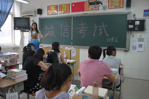期末考试临近,为了让同学们在一个公平、共正的环境下考试,旅游管理系特于2014年6月16日7时50分在各班教室召开以“诚信考试”为主题的动员班会,各班班主任老师带领大家一起讨论诚信考试的重要性。其中,13级高旅一班、社管一班、导游班、企划班等几位班主任老师还鼓励班级同学上台谈对诚信考试的认识,同学们也积极参与其中,结合事例提醒大家要严肃、诚信对待考试。