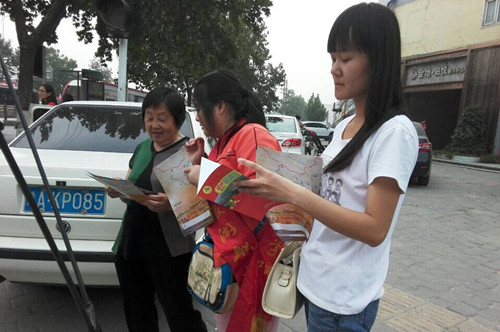 “旅苑新媒体”主要以打造全新旅游专业信息平台,融信息服务与旅游规划、大小项目策划设计、线路设计、旅游攻略于一身,服务广发旅友、研究者和业内人士为目的。这次社会实践活动主要是为康汇国际旅行社郑州旅游职业学院分社进行旅游攻略宣传。旅苑新媒体九名成员把宣传单页一一送入“百草园”社区居民手中,细心、耐心的为他们一一讲解。