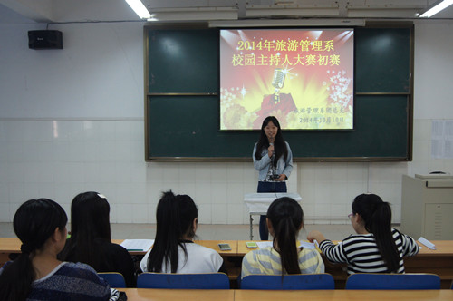 2014年10月10日16时,郑州旅游职业学院旅游管理系团总支校园主持人大赛初赛选拔活动在西教学楼多媒体教室203顺利开展。