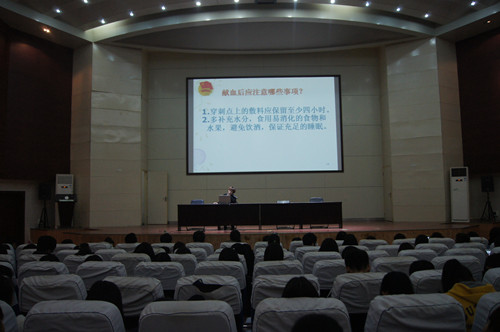 郑州旅游职业学院于2014年10月29日16时在西报告厅开展了“无偿献血培训会’活动,党总支书记岳正阳担任本次活动的培训工工作。