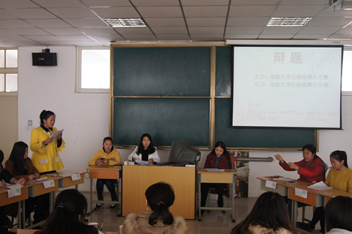 本次复赛共有两个小组,分别就辩题"在校大学生创业的利弊"和"成大事者是否拘小节"展开辩论。辩手们赛前充分的准备,双方赛时激烈的语言碰撞,吸引了本次活动观众的注意力,于精彩之处赢得阵阵掌声。随后,各评委针对辩手们的表现进行褒贬点评,从大方面到小细节,面面俱到,并提出了对选手们的要求和期许。