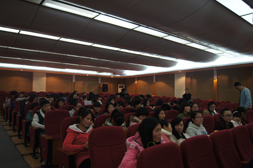 本次训练活动中旅游管理系13级合唱团成员通过考察同学们的基础发声及其音色、音调,把同学们分成高音部和低音部,之后为合唱团成员排队形。这次训练活动同学们的热情很高,大家都以饱满的激情投入到训练中。