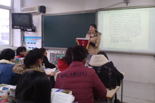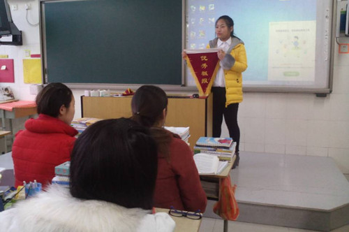 2014年12月18日8时,旅游管理系团总支干事于西教学楼为第七期优秀板报班级颁发了红旗,以兹鼓励。