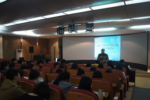 2015年3月8日15时,旅游管理系于西教学楼四楼3D多媒体教室召开了“2014—2015学年第二学期学生干部会议”,旅游管理系党总支副书记张笃川和团总支书记金慧慧出席了此次会议。