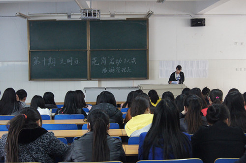 为了提高旅游管理系的系风系貌,发扬 “崇尚文明礼仪校园氛围,营造文明校园环境”的良好精神风貌,旅游管理系团总支干事于2015年3月19日12时在西教学楼203多媒体教室组织了入党积极分子“讲文明话,做文明人”文明示范岗活动。