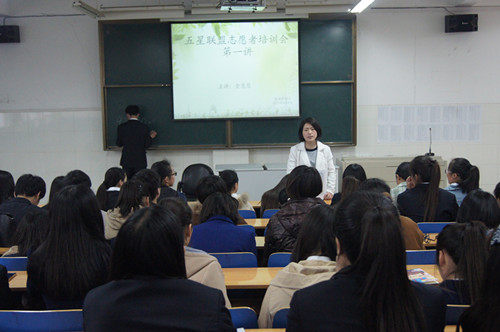 为提高旅游管理系志愿者的服务技能,2015年4月8日18时,旅游管理系于西教学楼203多媒体教室举办了“志愿者培训会”,此次培训会第一讲由旅游管理系团总支书记金慧慧主讲。
