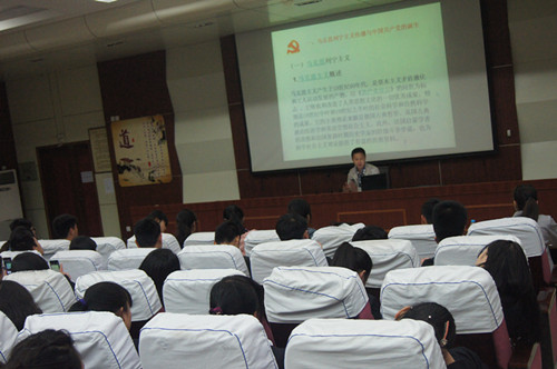 旅游管理系于2015年4月23日13时在信息中心一楼报告厅开展了二级团校第九讲“党的指导思想”课程。