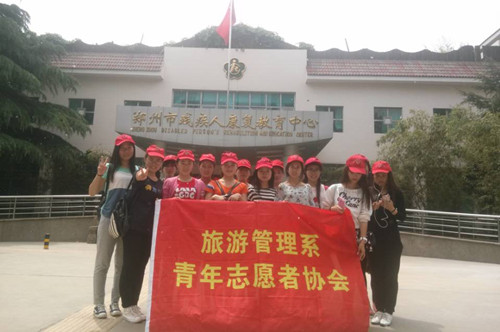为了丰富大学生的课余生活,展现当代大学生风采,并给每一个有爱心的人创造一个奉献爱心的机会。旅游管理系团总支干事于2015年5月14日13时带领13名旅游管理系青年志愿者在郑州残疾人康复中心进行了志愿服务。