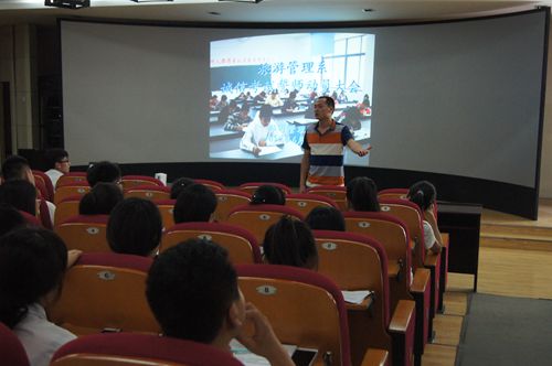为让旅游管理系同学树立诚信考试意识,严肃考风考纪。旅游管理系于2015年6月15日12时在西教学楼四楼3D情景实训室开展旅游管理系诚信考试誓师动员大会,参与此次大会的有旅游管理系党总支副书记张笃川、团总支书记金慧慧以及魏洋洋、徐晓军等辅导员老师。