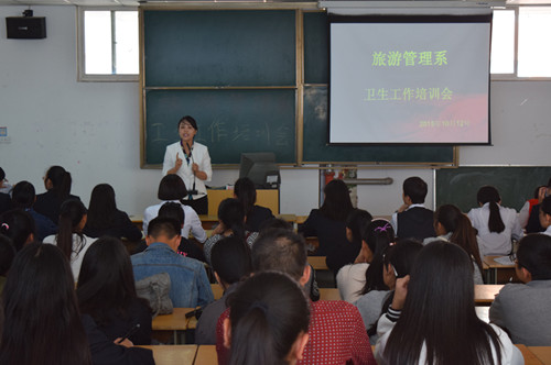 为加强旅游管理系环境的优越化,旅游管理系于2015年10月12日13时在西教学楼多媒体301开展卫生工作培训会。参与此次会议的有旅游管理系党总支书记肖靖、团总支书记金慧慧、辅导员郑艳萍等老师。