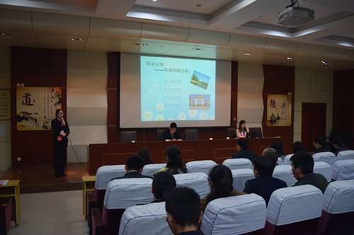 首先由王庆华处长宣布大会开始,并介绍出席此次大会的老师,其次由徐永清院长讲话并提出大学生职业规划的重要性;再由郭玉兵处长为这次职业规划大会介绍了本次竞赛的内容,此次竞赛有8个项目,通过这个比赛体现现代教育体系化,希望更多人积累一些经验,再由主持人张鑫睿为此竞赛介绍规章制度,然后由12个参赛选手一一介绍个人信息和外部环境分析,并且由评委老师一对一讲评,最后公布成绩。