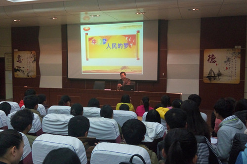 本节课的主题为“中国梦,人民的梦。”郑州旅游职业学院院团委书记朱宇为大家讲解。